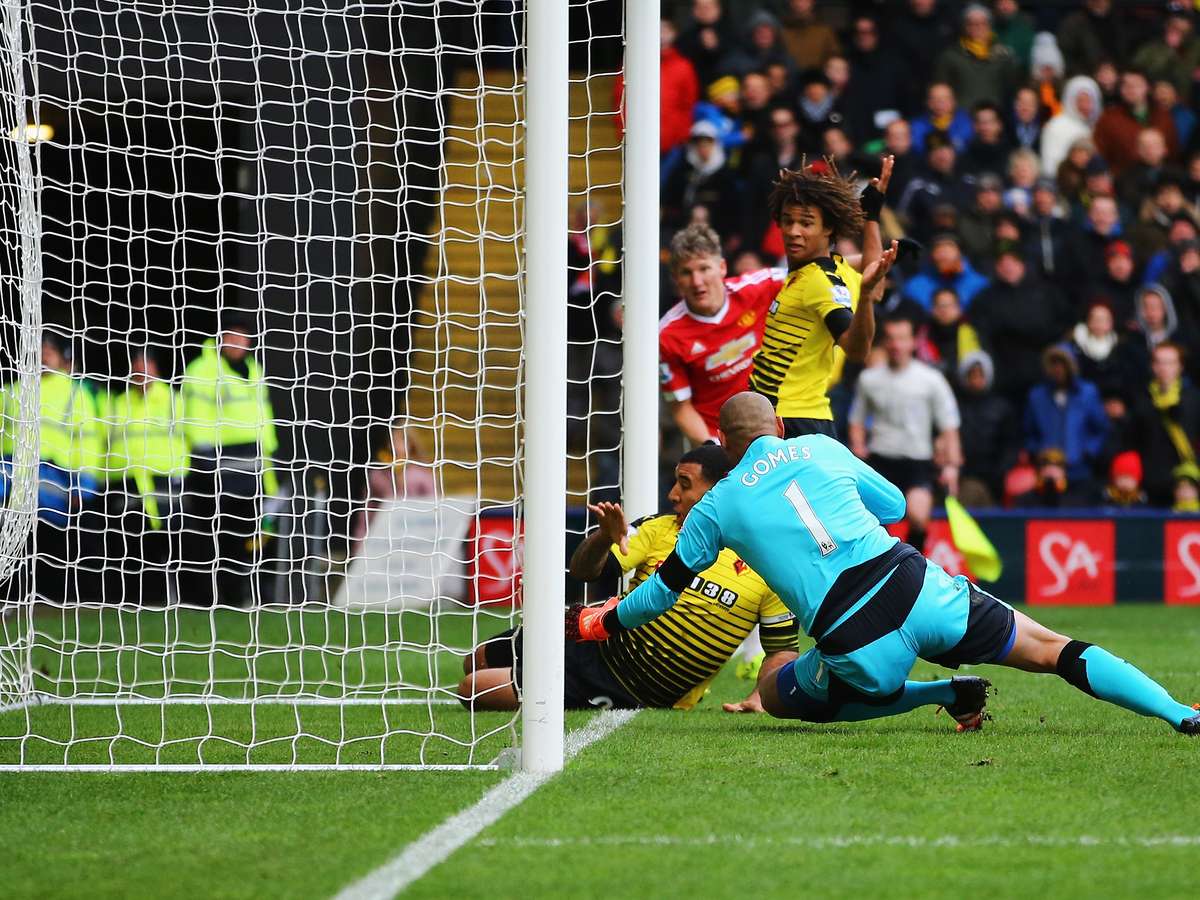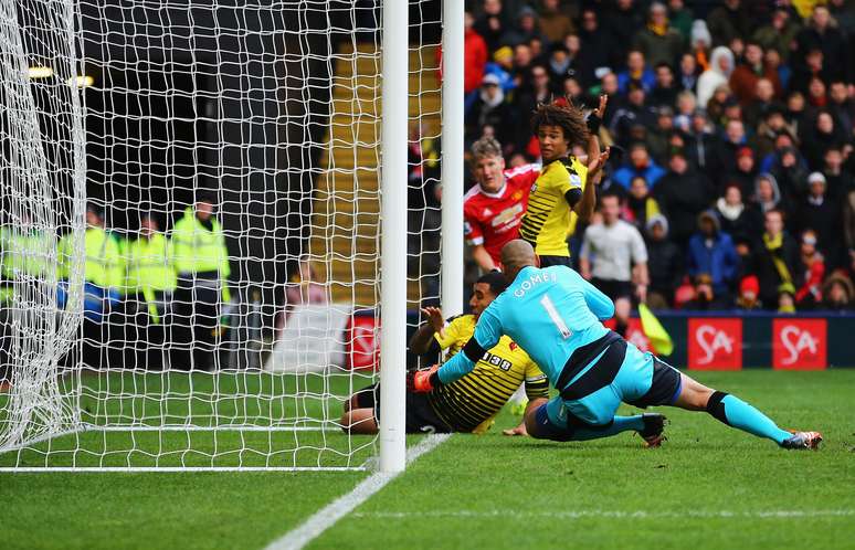 Um gol marcado em chute do alemão Schweinsteiger (Deeney empurrou para dentro, contra) já nos acréscimos da partida garantiu a vitória do Manchester United sobre o Watford, por 2 a 1, fora de casa. Antes, Depay e o mesmo Deeney haviam anotado no duelo deste sábado.