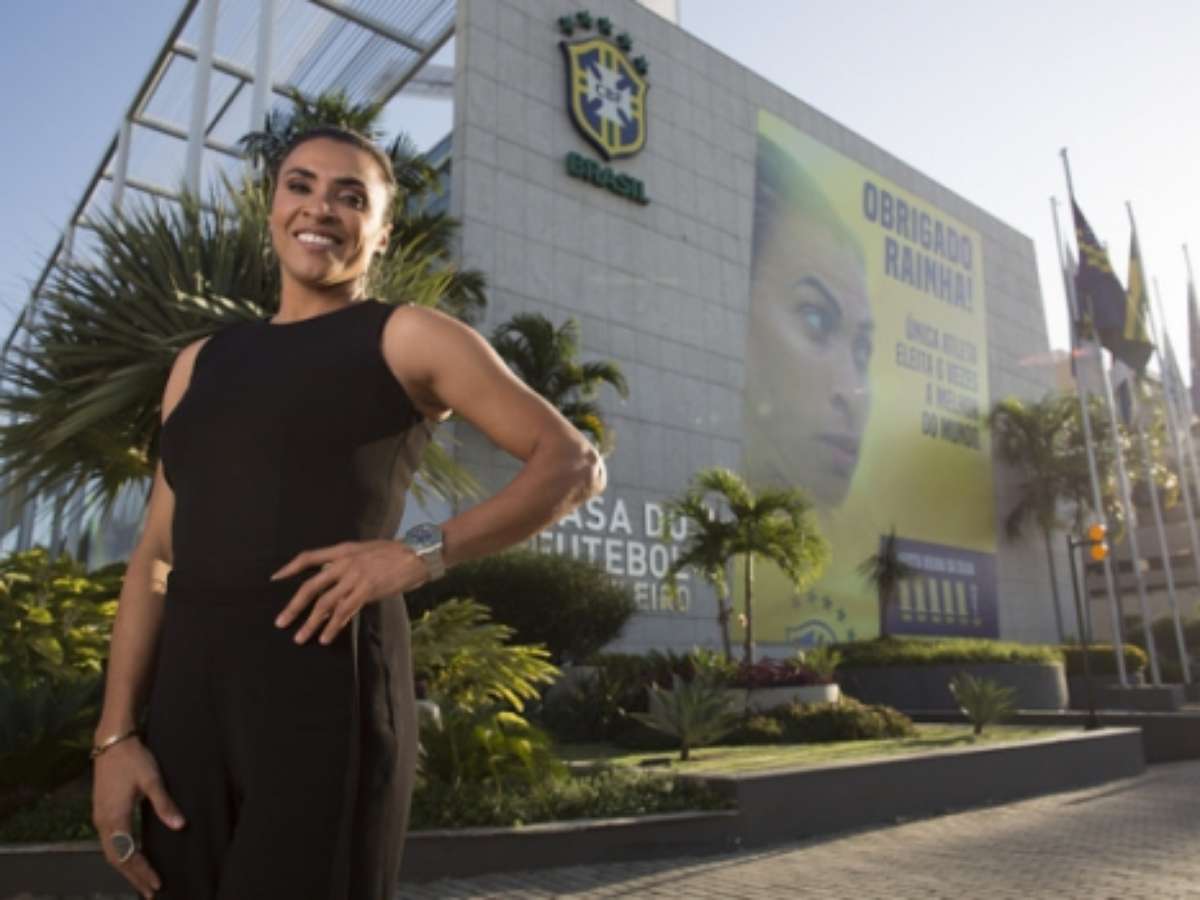 O tapete vermelho na entrada da CBF já indicava que, por ali, passaria alguém de renome - e foi exatamente isso que aconteceu. Foi por aquele tapete que Marta, eterna Rainha do futebol e melhor jogadora de todos os tempos, chegou à sede da entidade do futebol brasileiro. Nesta segunda-feira, a jogadora da Seleção foi homenageada na Casa do Futebol Brasileiro por ter se tornado a primeira atleta eleita seis vezes a melhor do mundo, entre homens e mulheres.
