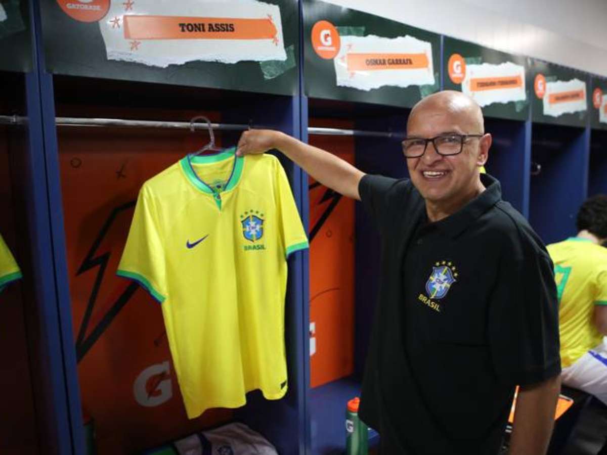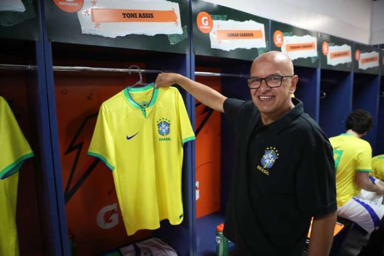Vestiário da seleção brasileira em dia de jogo. Em meio à movimentação intensa para deixar tudo em ordem, Sergio Luiz de Oliveira, de 57 anos, e Marcelo Climenes Araújo, de 42, se multiplicam nos bastidores. Envolvidos no projeto da Copa do Mundo, a dupla acumula multitarefas e se transforma em psicólogos, conselheiros e até escudeiros. Tudo isso em nome do projeto do hexa no Catar.