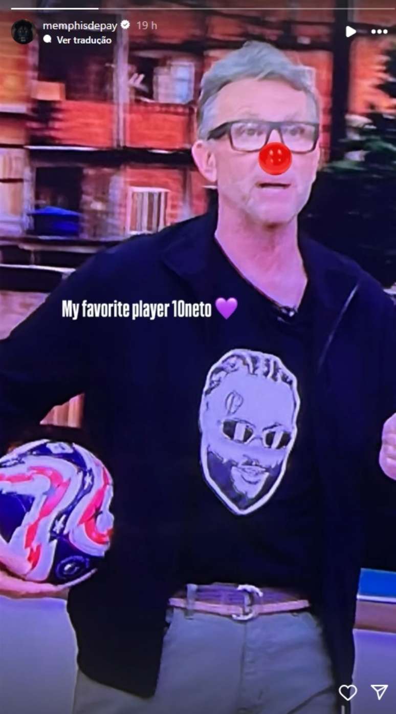 Pouco depois, Neto retrucou na mesma moeda, com uma foto de Memphis com nariz de palhaço e legenda semelhante. Na imagem, o holandês está no memorial do Corinthians ao lado de um painel do ex-jogador.