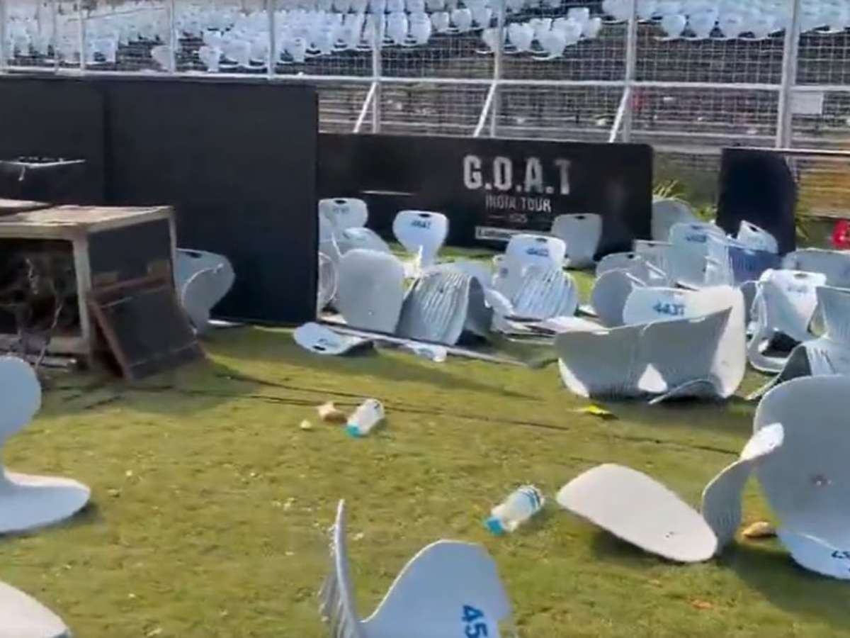 A passagem de Lionel Messi pela Índia terminou em uma grande confusão no Salt Lake Stadium, em Calcutá. Ao lado de Luis Suárez e Rodrigo de Paul, o craque argentino fez uma breve aparição no gramado. A promessa era que o camisa dez ficasse no evento por 45 minutos. No entanto, a falta de segurança fez o jogador ficar em campo apenas 20 minutos.