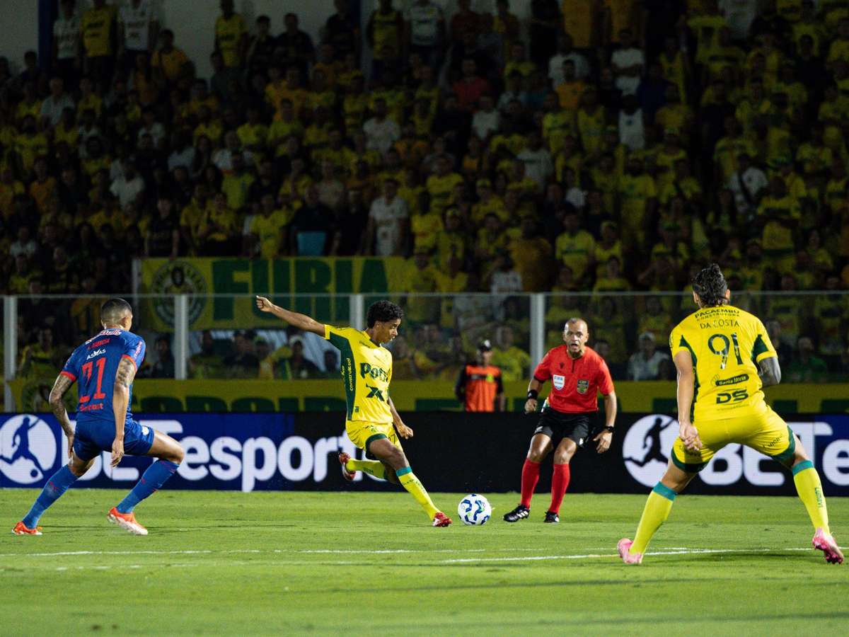 O início foi bem promissor para o Mirassol, que teve chances claras em cabeçadas de Danielzinho e Lucas Ramon. Logo depois, Eric Ramires assustou em finalização que a zaga bloqueou.