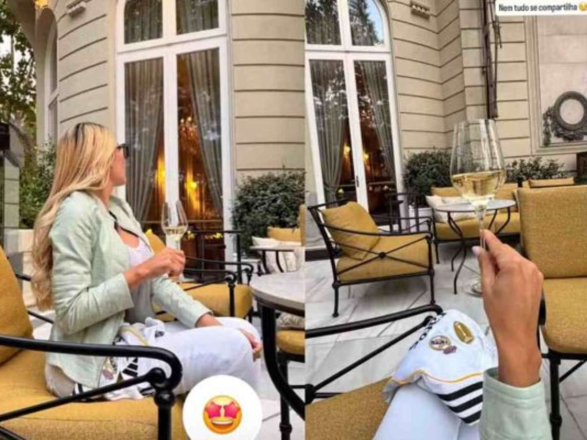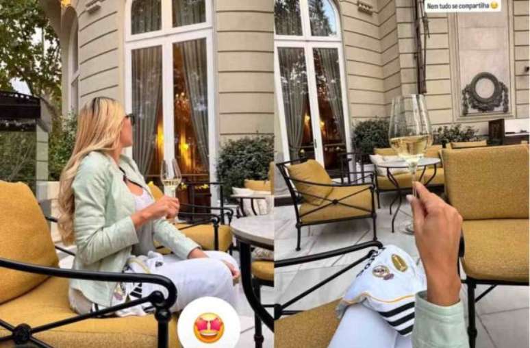 A influenciadora, aliás, postou registros em que ostenta momento de luxo ao segurar uma taça. Ela estava vestindo uma camisa dos Galácticos.