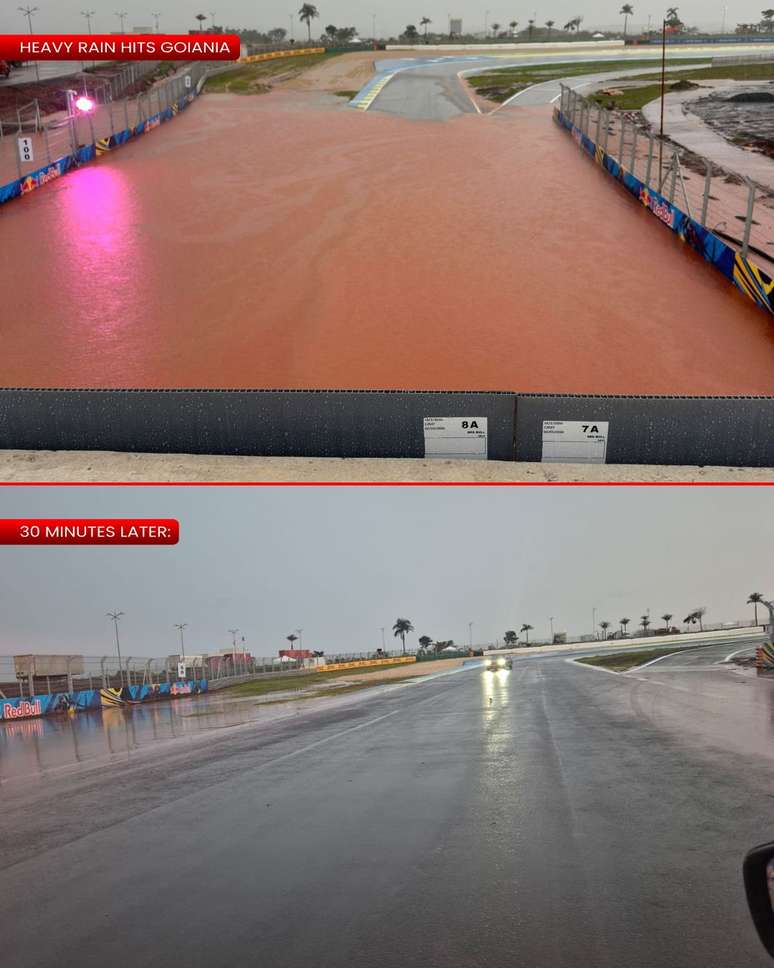 O circuito de Goiânia sofreu com fortes chuvas nos últimos dias, que deixaram partes do traçado parcialmente inundadas e geraram preocupação a apenas dois dias do início das atividades de pista