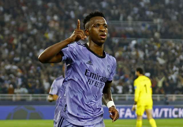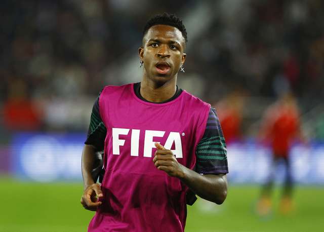 AQUECIMENTO: Vini Jr já está em campo se preparando para a partida.(Foto:Amr Abdallah Dalsh/REUTERS)