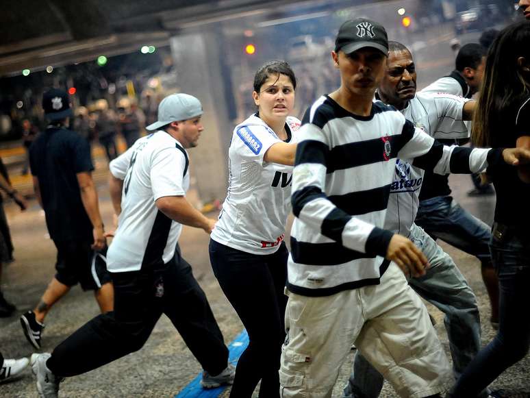 Corintianos tiveram que correr da polícia, que usou com gás lacrimogêneo e balas de borracha