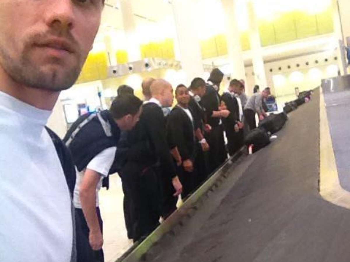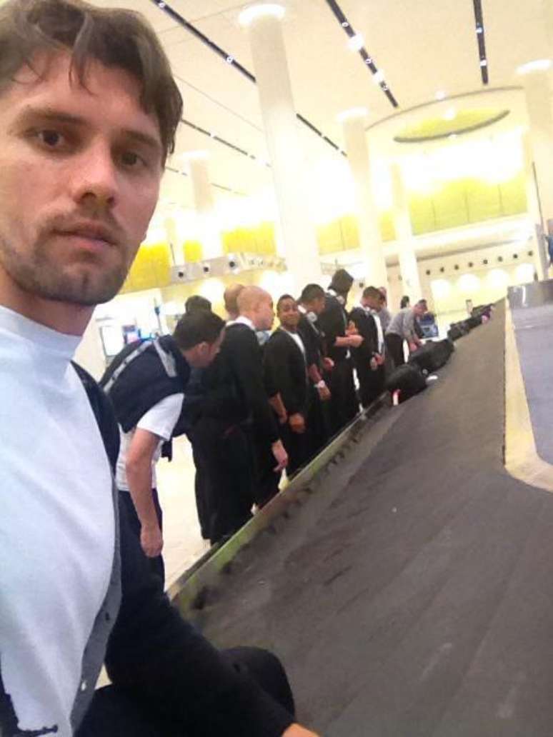 Paulo André Postou no Twitter uma foto dos jogadores corintianos esperando pelas malas no aeroporto