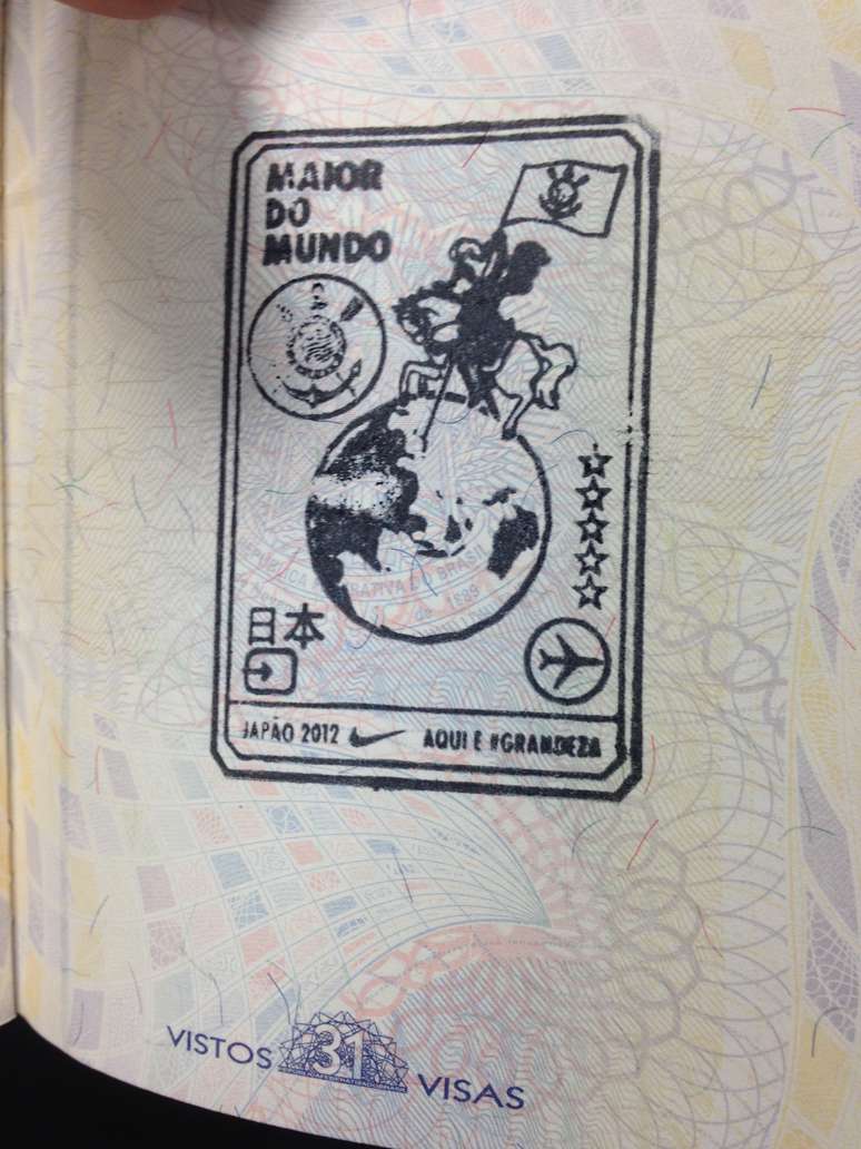 A piada de que o Corinthians não tem passaporte não vale mais neste domingo. Ao menos para um grupo de torcedores que estava nos arredores do Estádio Nissan, em Yokohama, que ganhou de graça carimbos nas páginas de vistos de seus documentos.