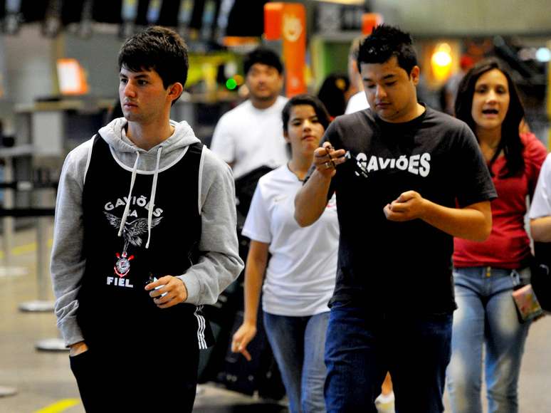 Corintianos começaram a chegar com sete horas de antecedência, já que o time só embarcará por volta das 23h (de Brasília)