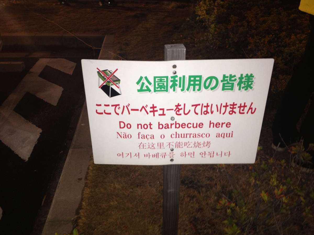 Os japoneses já começam a se armar para evitar transtornos com o imenso público brasileiro que acompanha a passagem pelo Corinthians, durante a disputa do Mundial de Clubes da Fifa. Os responsáveis pelo Wave Stadium colocaram uma placa na entrada do local de treinos do clube alvinegro avisando, em português, para “não fazer churrasco aqui”.