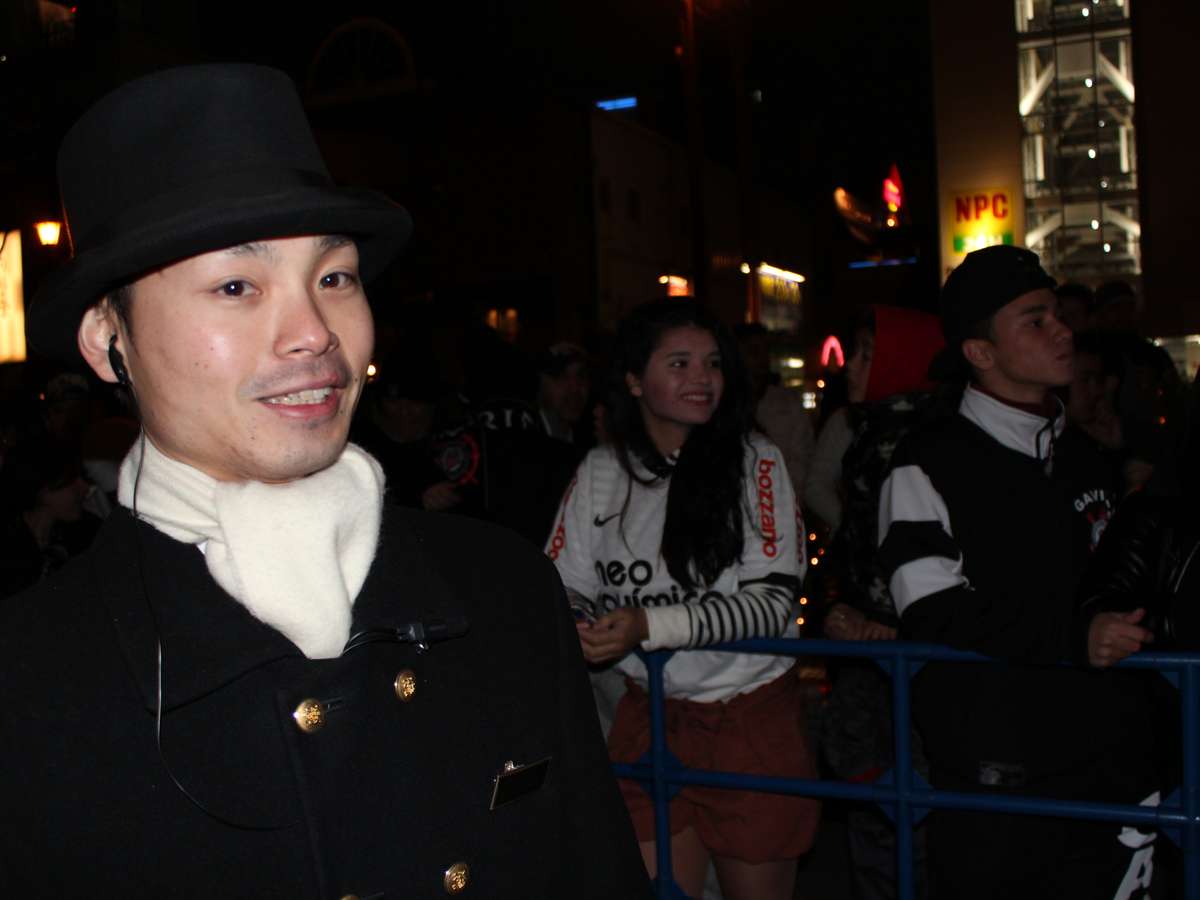 A gerência do hotel onde o Corinthians ficará hospedado (a chegada está prevista para as 21h30 locais, 10h30 horário de Brasília) montou uma grade de proteção para conter os torcedores no saguão de entrada. É neste ponto que se concentra o trabalho de Yaya Horio, que com sua cartola e sobretudo ganhou um apelido dos torcedores: "pinguim da Fiel".