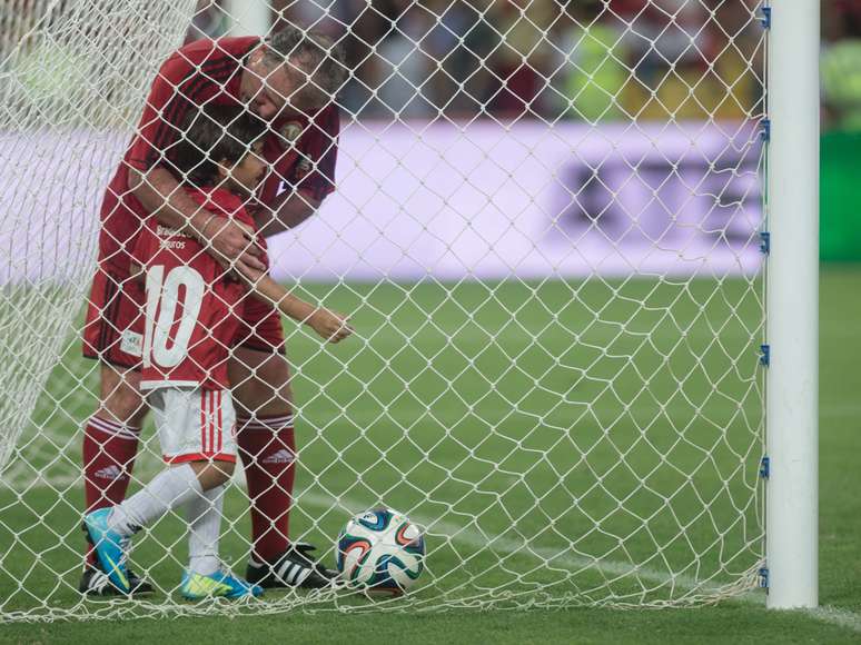 Em um evento com bons jogadores do futebol atual, como o lateral Léo Moura, os meias Darío Conca e Elias e o atacante Hernane, assim como outros grandes ex-atletas, como Leonardo, Júnior, Renato Gaúcho e até o japonês Nakata, Romário se sobressaiu em sua primeira vez no estádio após a reforma para a Copa das Confederações deste ano e a Copa do Mundo de 2014.