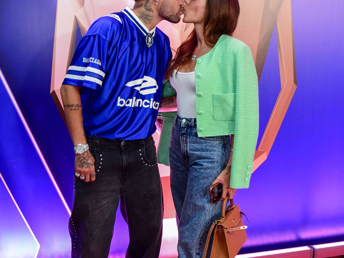 Neymar e Bruna Biancardi trocam beijos em SP durante final da Kings League; veja fotos