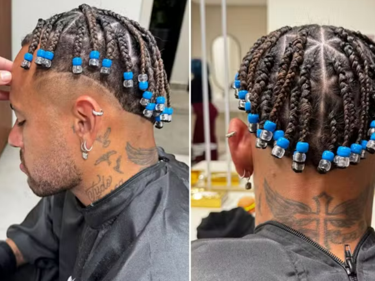 Neymar exibe novo estilo de tranças, agora com miçangas azuis e transparentes