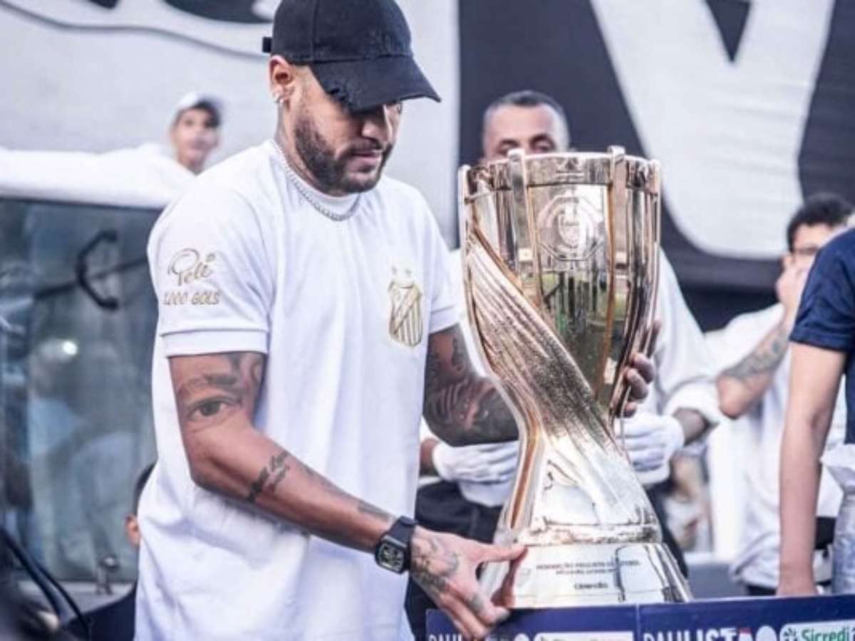 O craque brasileiro Neymar apareceu na Vila Belmiro, nesse fim de semana, para acompanhar a final do Campeonato Paulista, entre Santos e Palmeiras. No entanto, além da presença ilustre, chamou atenção uma joia que o jogador ostentava .