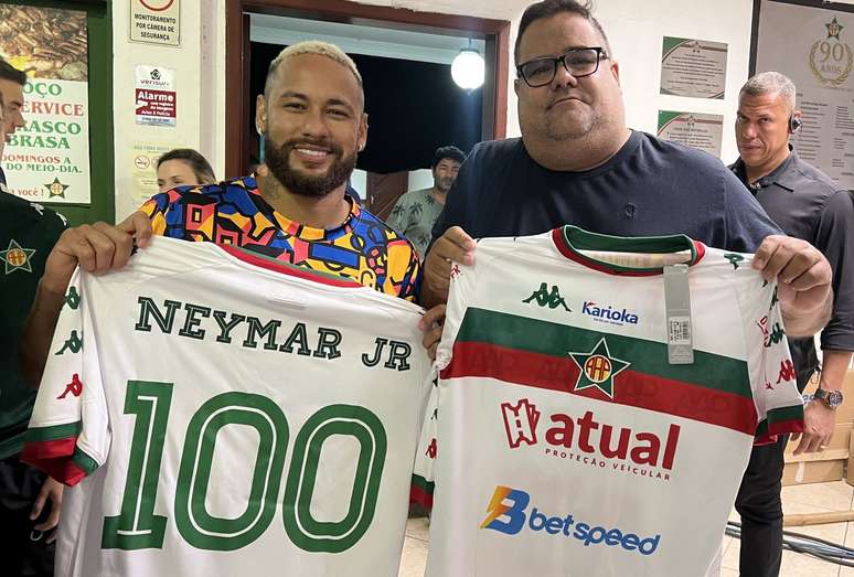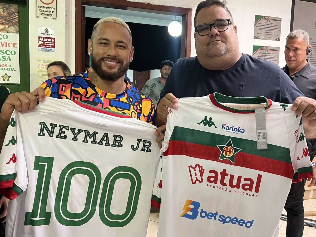 Uma foto pegou os amantes do futebol desprevenidos. O atacante Neymar, do Al Hilal e da Seleção Brasileira, compareceu ao Luso-Brasileiro, estádio da Portuguesa, na Ilha do Governador, nesta terça-feira. O perfil do clube carioca divulgou uma foto do jogador com o presidente Marcelo Barros.