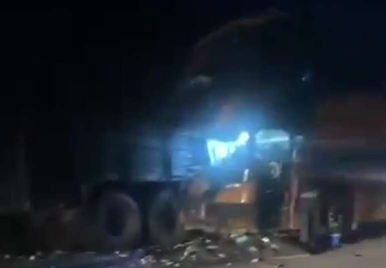 As primeiras imagens do acidente mostram o ônibus do Águia de Marabá com a parte frontal parcialmente destruída, após colisão com um caminhão que estava parado no acostamento.