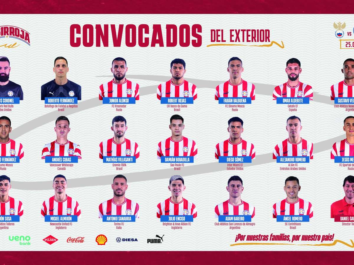 ATACANTES: Alejandro Romero (Al Ain-EAU), Jesús Medina (Spartak Moscou-RUS), Ramón Sosa (Talleres-ARG), Miguel Almirón (Newcastle-ING), Antonio Sanabria (Torino-ITA), Julio Enciso (Brighton-ING), Adam Bareiro (San Lorenzo-ARG) e Ángel Romero (Corinthians).