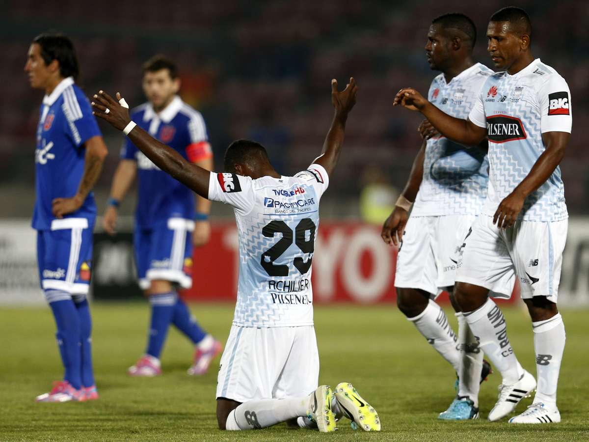 Na partida que marcou a abertura do grupo 4 da Taça Libertadores, o mesmo do Internacional, o Emelec surpreendeu ao vencer o Universidad do Chile por 1 a 0 nesta terça-feira em pleno Estádio Nacional, em Santiago.