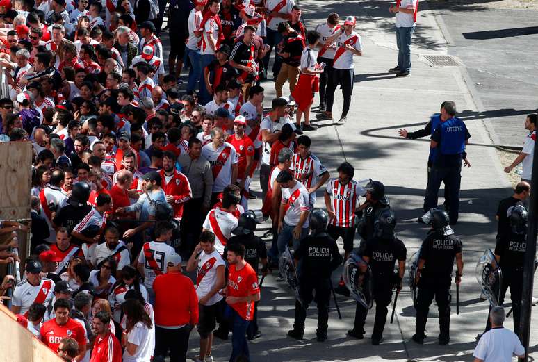 Momentos antes do horário previsto para o início da final, nos arredores do Monumental de Núñez, torcedores do River Plate armaram uma emboscada e apedrejaram o ônibus que levava os jogadores do Boca Juniors. Não satisfeita, parte da torcida da casa ainda entrou em confronto com a polícia e invadiu o estádio.
