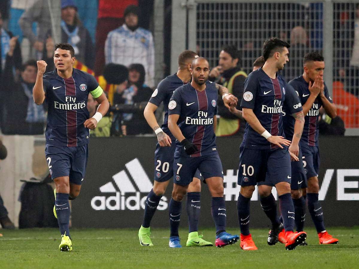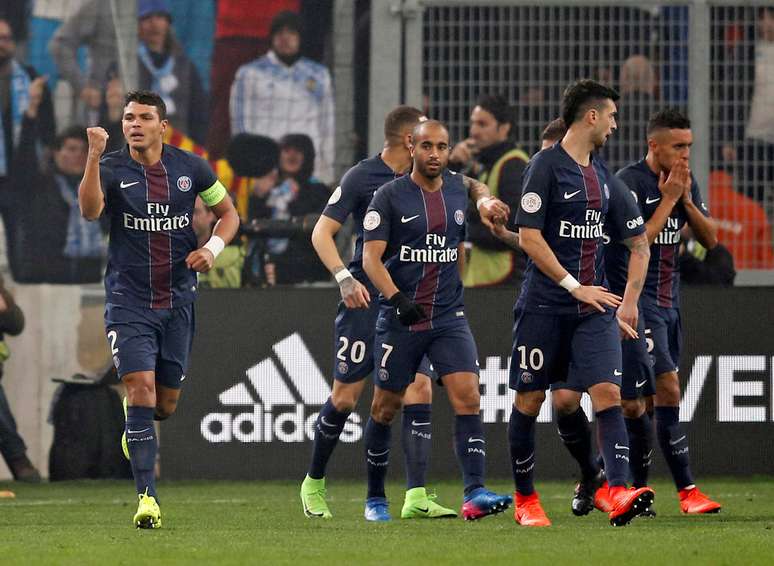 A diferença entre PSG e Olympique ficaria evidente também dentro de campo logo no princípio do confronto deste fim de semana. Aos cinco minutos, em uma cobrança de falta ensaiada, a bola foi levantada para o também brasileiro Thiago Silva escorar de cabeça da esquerda. No meio da área, o ex-corintiano Marquinhos testou para dentro e correu para o abraço.