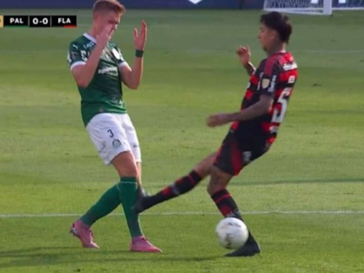 Jogador do Flamengo acertou Bruno Fuchs, do Palmeiras, com jogo parado, mas levou só amarelo