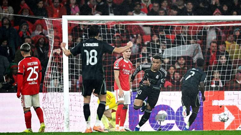 O Real Madrid abriu o placar com Mbappé, após cruzamento de Asencio, em uma das poucas falhas defensivas dos portugueses, mas o Benfica reagiu rápido: Schjelderup empatou após boa jogada pela ponta, e nos acréscimos Pavlidis converteu pênalti sofrido por Otamendi, garantindo a virada antes do intervalo.