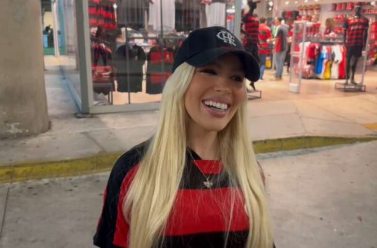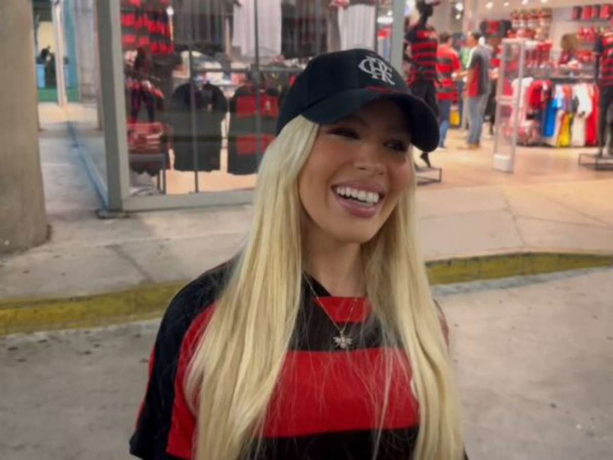 Influenciadora acompanhou a partida, vestiu camisa e também mostrou amuleto da sorte do Rubro-Negro de quando namorava Léo Pereira