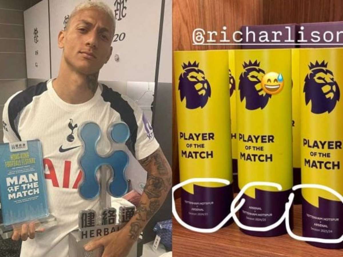 Nos primeiros momentos de preparação para a próxima temporada europeia, Richarlison e Gabriel Magalhães se enfrentaram em um amistoso. O Tottenham venceu o Arsenal por 1 a 0, em Hong Kong, nesta quinta-feira (31/07), com gol de Sarr, no fim do primeiro tempo. Posteriormente a isso, o atacante fez uma publicação nas suas redes sociais em que posa com os troféus do torneio de pré-temporada e de melhor jogador da partida. Inclusive, o jogador dos Spurs marca o compatriota e rival na mesma postagem.