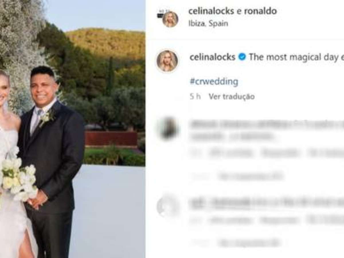 "O dia mais mágico de todos", escreveu o casal na postagem original no Instagram. "(Ibiza) É um lugar tão importante para nós. Temos lindas memórias neste lugar, porque passamos todos os nossos verões aqui, com toda a nossa família. Foi um dia especial, com nossos amigos e familiares mais próximos. Convidamos a todos que fazem parte da nossa história e criamos momentos ainda mais incríveis durante a cerimônia", contou Celina à revista. "Olhá-la andando pelo corredor fez meu coração bater cada vez mais acelerado", completou Ronaldo.
