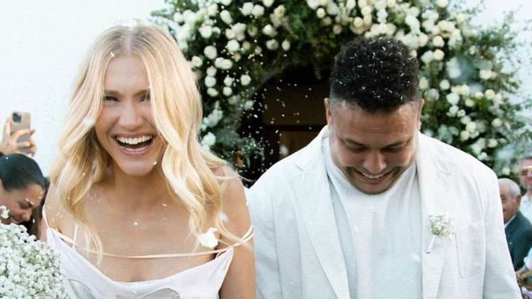 Tanto Celina, de 32 anos, quanto Ronaldo, de 47, trajaram roupas brancas na cerimônia. O dono do Valladolid-ESP e da SAF do Cruzeiro e a modelo estão juntos desde 2015. Eles oficializaram o noivado, na República Dominicana, somente apenas em janeiro deste ano.
