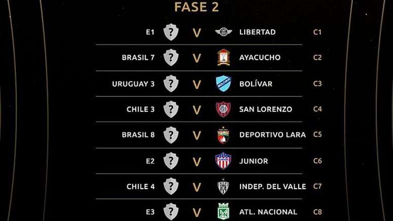 O 'Brasil 7' vai enfrentar entre os dias 2 e 11 de março o Ayacucho, do Peru, enquanto o 'Brasil 8' terá pela frente o Deportivo Lara, da Venezuela. Já na fase 3, entre 16 de março e 8 de abril, os times nacionais poderão ter de superar adversários como o Independiente del Valle, campeão da Sul-Americana de 2019, ou o San Lorenzo, da Argentina, vencedor da Libertadores 2014.
