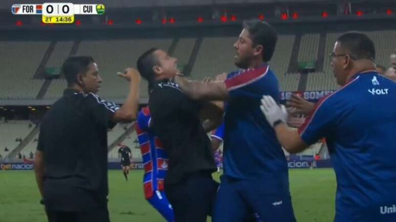 Técnicos de Fortaleza e Cuiabá trocam empurrões e são expulsos em partida da Série B; veja vídeo