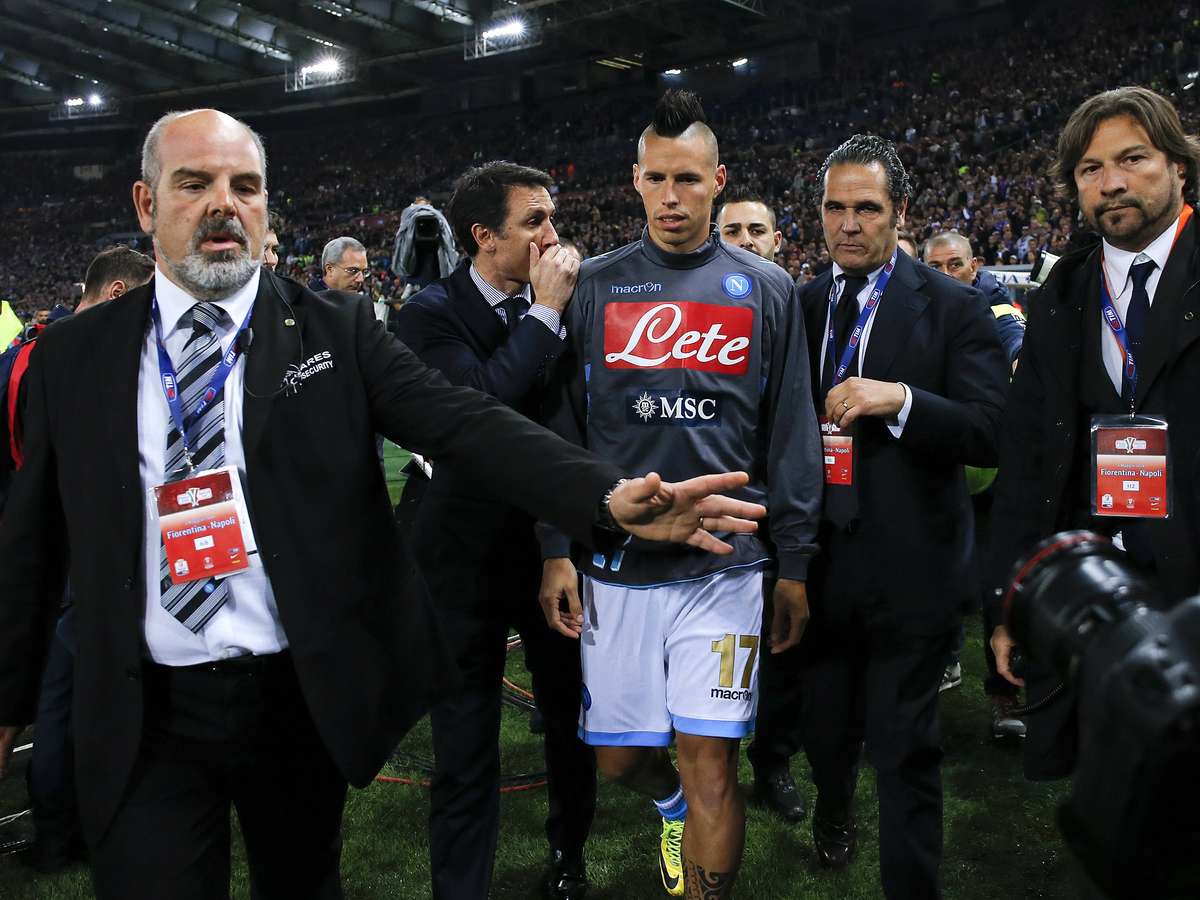 Em meio a discussão se a partida começaria ou não, o capitão do Napoli, o meia eslovaco Marek Hamsik se dirigiu ao setor da arquibancada onde estavam os 'ultras' da equipe, para conversar com Gennaro di Tommaso, enquanto dezenas de sinalizadores e rojões eram lançados contra jornalistas.
