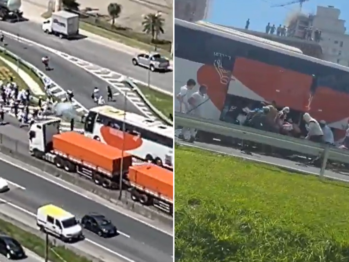 Torcedores do Santos e Internacional se enfrentaram na BR-101 em Itapema, causando bloqueio, depredação de ônibus e ferimentos em seis pessoas; dez envolvidos foram detidos pela polícia.