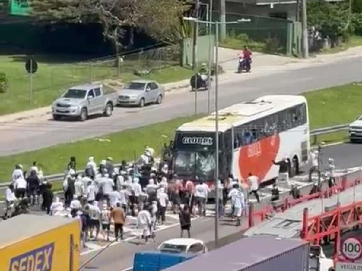 Torcida do Santos ataca ônibus de uma uniformizada do Internacional em Santa Catarina