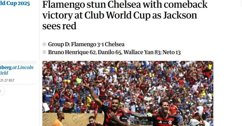 Do outro lado do Atlântico, o britânico The Guardian foi direto ao ponto: criticou duramente o Chelsea e elogiou o Flamengo. Para o jornal inglês, os comandados de Enzo Maresca mostraram uma postura reativa e confusa, enquanto o Rubro-Negro, mesmo com orçamento menor, foi melhor em campo e jogou com mais vontade. O texto ainda lamentou a expulsão de Nicolas Jackson, a segunda em quatro jogos, e alertou para o risco dos Blues enfrentarem o Bayern nas oitavas de final.