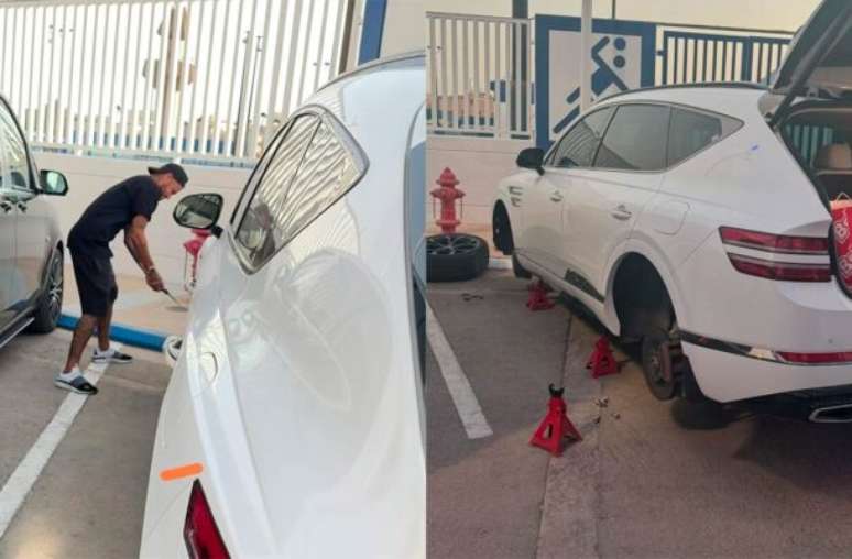 Neymar devolveu brincadeira do colega do Al-Hilal e deixou o carro dele sem os quatro pneus