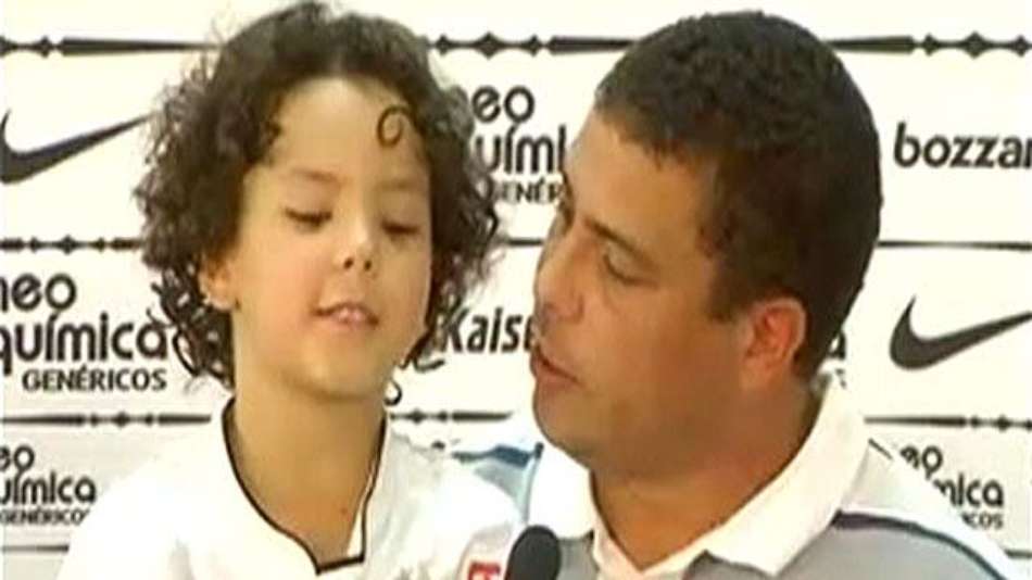 Futebol Filho de Ronaldo traz risos à despedida do Fenômeno Exibir comentários Compartilhar Alex, de 5 anos, chamou a atenção por não parar um minuto durante a última entrevista coletiva do ex-jogador do Corinthians Terra Publicidade