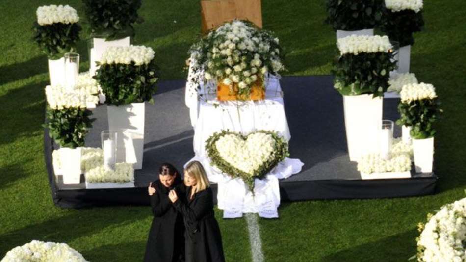 Futebol Funeral de goleiro alemão reúne 45 mil torcedores Exibir comentários Compartilhar Torcedores, dirigentes e estrelas do futebol alemão foram ao estádio do Hannover para as últimas homenagens a Robert Enke, morto na terça-feira OMNISPORT Publicidade