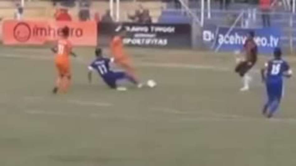 Futebol Jogador morre na Indonésia após voadora criminosa de goleiro Exibir comentários Compartilhar Akli Fairuz, do Persiraja, morreu na sexta-feira (16), após lesões intestinais causadas pela voadora do goleiro, Agus Rahman, do PSAP Sigli Reprodução Publicidade