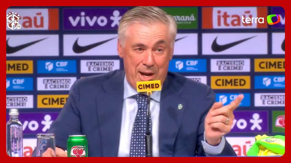 A apresentação do novo técnico da Seleção aconteceu nesta segunda-feira, 26, no hotel Grand Hyatt, no Rio de Janeiro. Carlo Ancelotti revelou os 25 nomes escolhidos para dois jogos das Eliminatórias da Copa do Mundo de 2026. Foram convocados os goleiros Alisson (Liverpool), Bento (Al Nassr) e Hugo Souza (Corinthians). Na defesa, Alex Sandro (Flamengo), Alexsandro Ribeiro (Lille), Beraldo (PSG), Carlos Augusto (Inter de Milão), Danilo (Flamengo), Léo Ortiz (Flamengo), Marquinhos (PSG), Vanderson (Monaco) e Wesley (Flamengo). Meio-campistas: Andreas Pereira (Fulham), Andrey Santos (Strasbourg), Bruno Guimarães (Newcastle), Casemiro (Manchester United), Ederson (Atalanta), Gerson (Flamengo). Os atacantes são Antony (Betis), Estêvão (Palmeiras), Gabriel Martinelli (Arsenal), Matheus Cunha (Wolverhampton), Raphinha (Barcelona), Richarlison (Tottenham) e Vinicius Jr (Real Madrid). Reprodução/CBF/Youtube