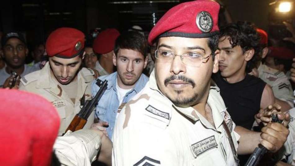 Futebol Soldado aponta arma para rosto de Lionel Messi; veja Exibir comentários Compartilhar Escoltado por guardas ao chegar na Arábia Saudita, o jogador da Seleção argentina ficou constrangido com a situação Terra Publicidade