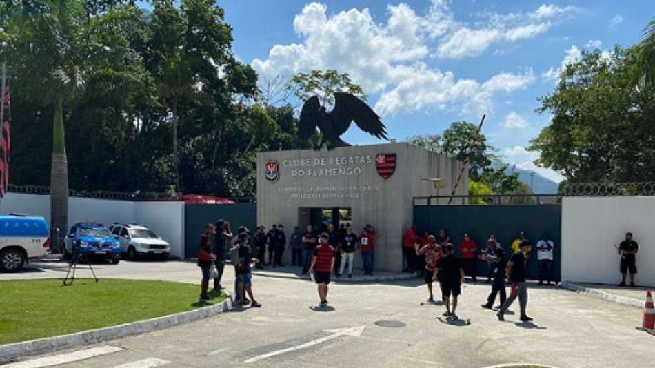 Torcedores do Flamengo protestam no Ninho do Urubu