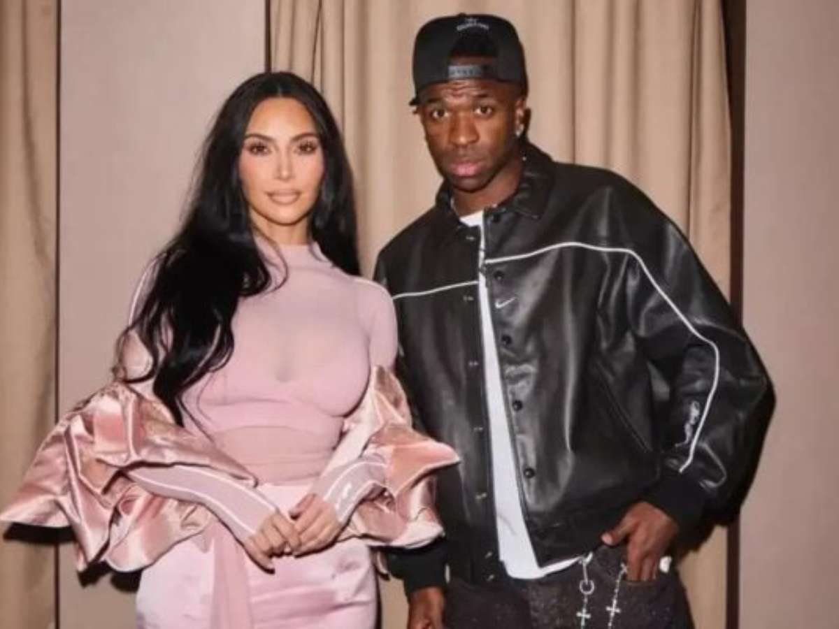 Vini Jr é acompanhado por Kim Kardashian em evento de lançamento de loja da Nike
