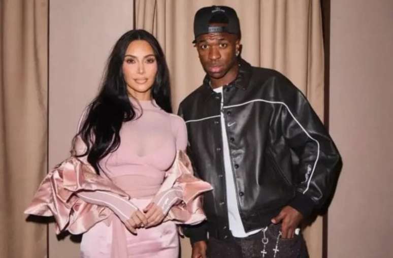 Atacante do Real Madrid, Vini Jr participou de um evento fora das quatro linhas em Paris. O brasileiro esteve na capital francesa para prestigiar a inauguração de uma nova loja da Nike, sua patrocinadora desde quando ele tinha 13 anos. Ao lado do astro do futebol, também estiveram a famosa atriz, influenciadora e empresária Kim Kardashian, além do rapper Central Cee.