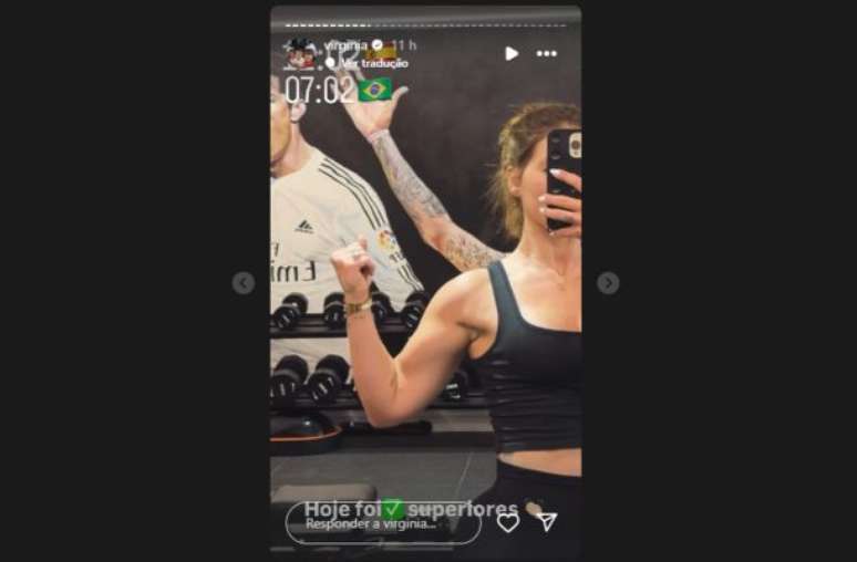 Virginia decidiu mudar a sua postura e passou a alimentar as especulações de que vive um relacionamento com Vini Jr. Afinal, a influenciadora postou mais registros nas redes sociais de que está novamente hospedada na casa do atacante. Em um deles, ela está ao lado de Tainá Castro, esposa do zagueiro Militão e vizinho do camisa 7 do Real Madrid, e se preparava para treinar. Posteriormente, as duas fizeram exercícios na academia particular do astro.