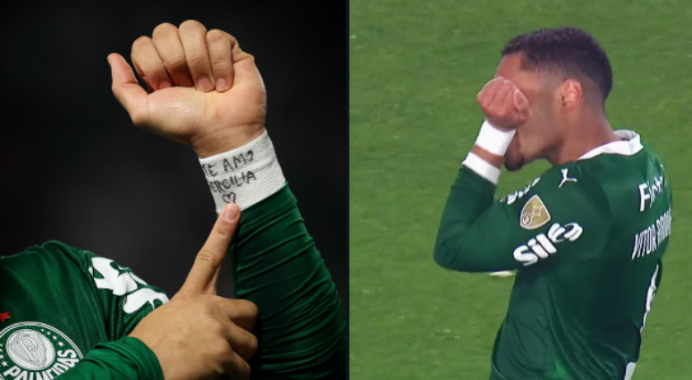 O atacante Vitor Roque, do Palmeiras, homenageou a mãe após marcar o segundo gol na vitória do Verdão sobre o River-Plate, por 2 a 1, pela ida das quartas de final da Libertadores.
