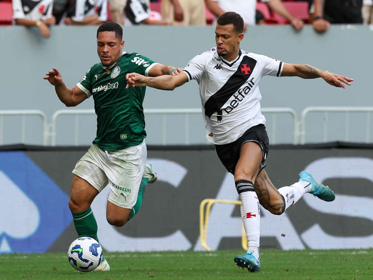 Com gol solitário de Vitor Roque, Palmeiras supera o Vasco no Mané Garrincha e assume momentaneamente o topo da tabela