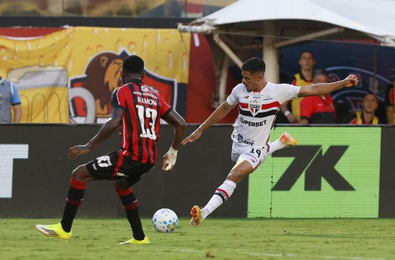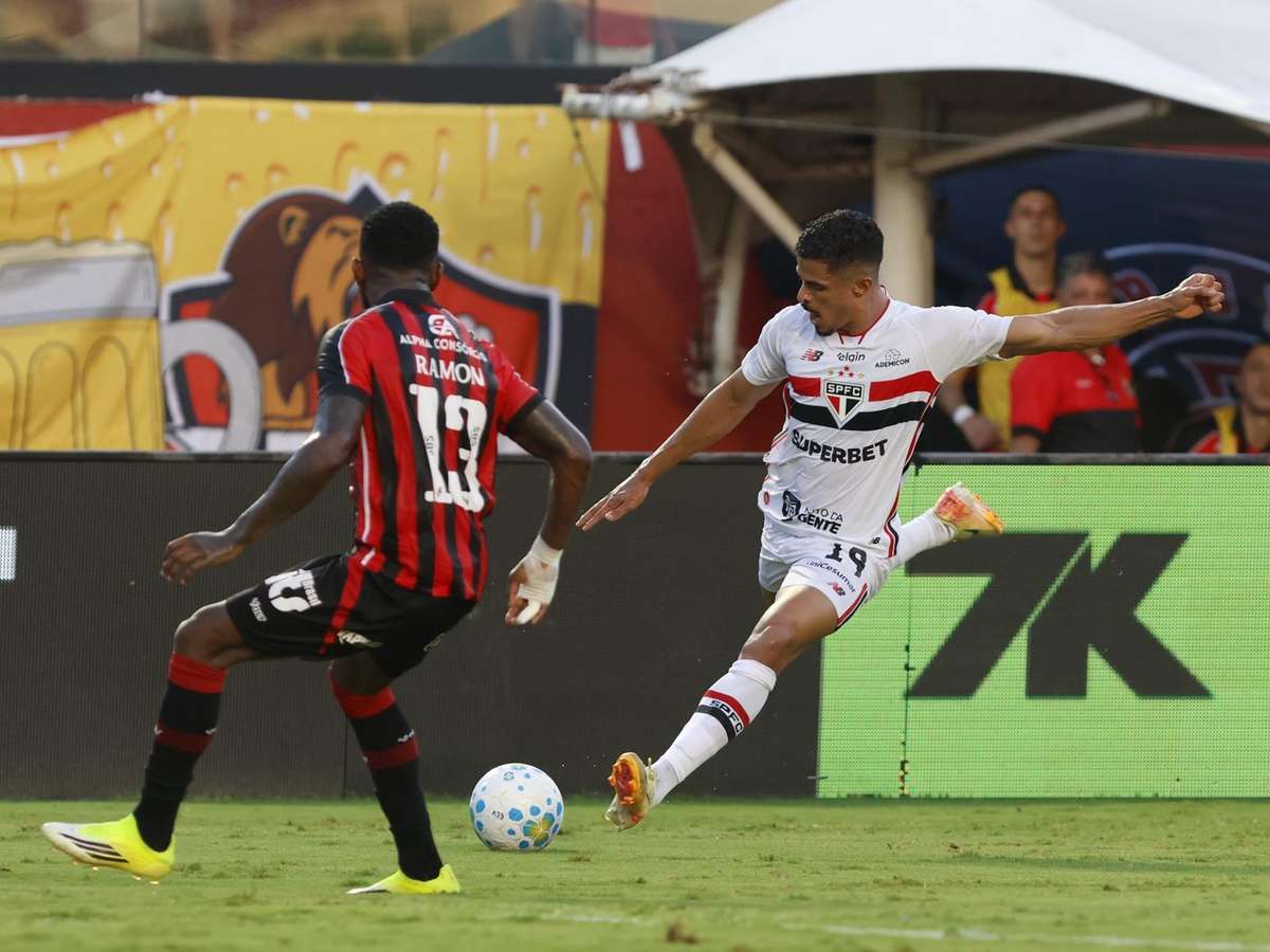 A primeira chance foi do São Paulo: logo aos dois minutos, Artur aproveitou a sobra após cruzamento de Enzo Díaz e finalizou com perigo, exigindo boa defesa de Lucas Arcanjo.